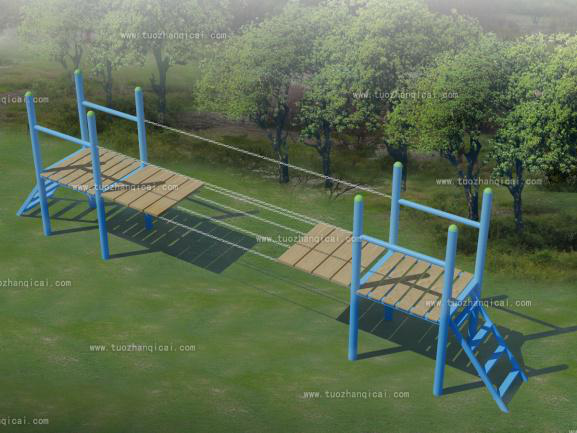 智過瀘定橋拓展培訓項目描述:模擬當年紅軍"飛奪瀘定橋"的情景,站在高空處,憑借人體自我平衡,跨過一段相隔半米有一個木板的軟"橋"。