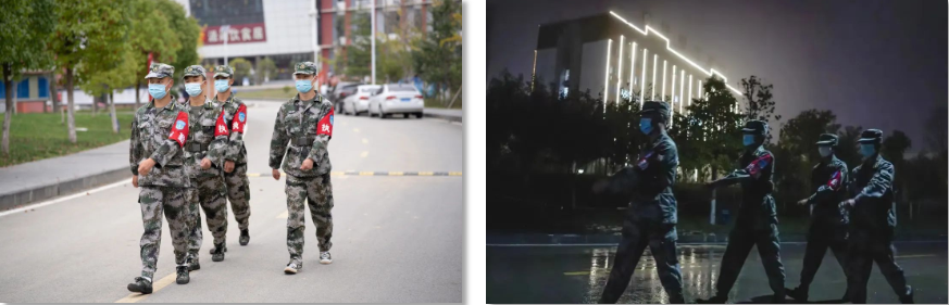 在學(xué)院實(shí)施靜默管理至今,校園內(nèi)總能見(jiàn)到一個(gè)個(gè)身穿迷彩服,英姿颯爽的身影,他們同一線(xiàn)抗疫人員站在一起,默默進(jìn)行著日常巡邏、定點(diǎn)值守、秩序維護(hù)、隱患排查等工作,成為了織密織牢學(xué)院疫情防控網(wǎng)的重要一環(huán)。