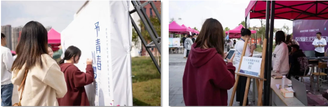 11月7日,學(xué)院開展了為期一天的社團(tuán)招新活動(dòng)。穿梭在各個(gè)社團(tuán)之間,你會看到精妙絕倫的攝影作品、栩栩如生的繪畫和互相切磋棋藝的同學(xué)們;“是的我看見到處是陽光,快樂在校園上空飄揚(yáng)”,聽!這是電聲社傳來的動(dòng)聽歌聲……各種各樣吸引人的社團(tuán)讓現(xiàn)場的小萌新們心動(dòng)不已。    (社團(tuán)招新現(xiàn)場) 社團(tuán)招新現(xiàn)場如火如荼,大家都樂此不疲,充滿了歡聲笑語。為了讓快樂加倍,讓歡笑加倍,學(xué)院還為大家準(zhǔn)備了黨的二十大答題闖關(guān)、新生才藝展示、予青春以夢想青春寄語等豐富多彩的現(xiàn)場活動(dòng)。 ( 二十大答題闖關(guān)、青春寄語活動(dòng) ) ( 新生才藝展示活動(dòng) ) 光陰似箭,在最后一個(gè)才藝展示節(jié)目結(jié)束的歡呼聲中,學(xué)院的社團(tuán)招新活動(dòng)完美落幕,相信大家也都找到了自己心儀的社團(tuán),在以后的時(shí)間里,相信大家都能在自己的社團(tuán)學(xué)到知識,提高自身的能力。 (社團(tuán)風(fēng)采) 一千句招新文案,都不及你的出現(xiàn)。在未來的日子里,期待能與大家一同前行,成就多彩人生,譜寫屬于我們的青春華章。也祝大家在未來三年都擁有一個(gè)豐富多彩的大學(xué)生活!