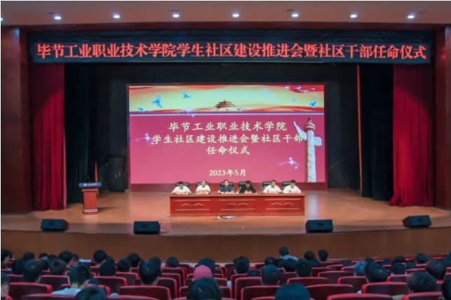 5月24日,畢節(jié)工業(yè)職業(yè)技術(shù)學(xué)院學(xué)生社區(qū)建設(shè)推進(jìn)會暨社區(qū)干部聘任儀式在多功能廳召開,正式成立了學(xué)院社區(qū)管理委員會,標(biāo)志著我院黨建引領(lǐng)“一站式”學(xué)生社區(qū)綜合模式建設(shè)正式啟動。
