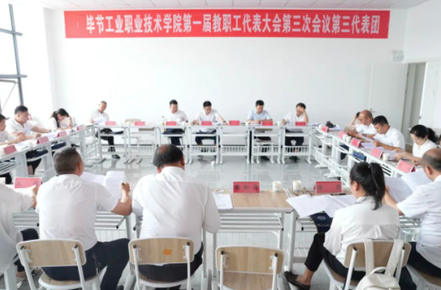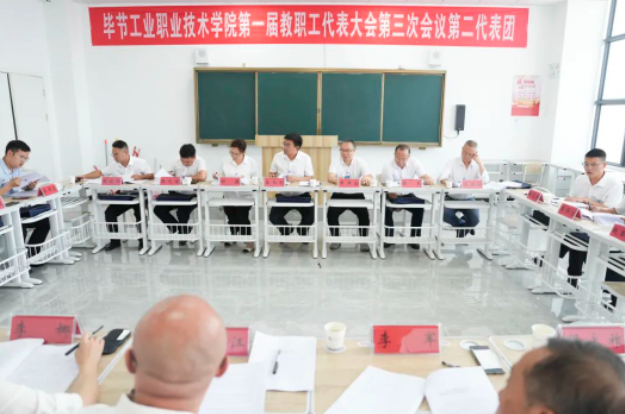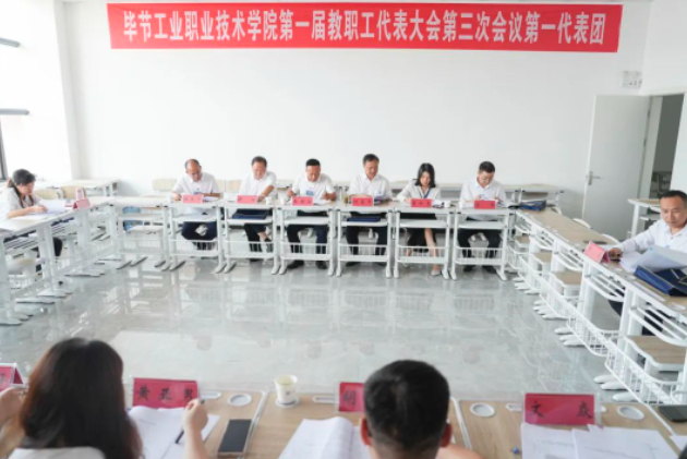 大會(huì)還聽(tīng)取了《畢節(jié)工業(yè)職業(yè)技術(shù)學(xué)院2022年財(cái)務(wù)預(yù)算執(zhí)行情況和2023年財(cái)務(wù)預(yù)算情況報(bào)告》《畢節(jié)工業(yè)職業(yè)技術(shù)學(xué)院工會(huì)工作報(bào)告》《畢節(jié)工業(yè)職業(yè)技術(shù)學(xué)院第一屆第二次教職工代表大會(huì)提案落實(shí)情況及第一屆第三次教職工代表大會(huì)提案征情況報(bào)告》,審議了《畢節(jié)工業(yè)職業(yè)技術(shù)學(xué)院專業(yè)技術(shù)職務(wù)評(píng)聘管理暫行辦法》《畢節(jié)工業(yè)職業(yè)技術(shù)學(xué)院年度部門(mén)綜合考核實(shí)施方案》。期間,三個(gè)代表團(tuán)與會(huì)代表紛紛以高度的責(zé)任感和飽滿的主人翁精神,緊緊圍繞中心工作,對(duì)大會(huì)相關(guān)《報(bào)告》《辦法》《方案》及相關(guān)《決議(草案)》進(jìn)行認(rèn)真討論和審議,提出修改意見(jiàn)和建議,積極為學(xué)院發(fā)展建言獻(xiàn)策。
