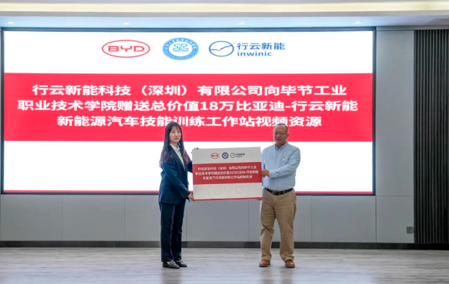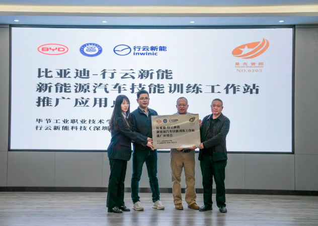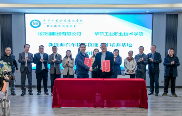 (會(huì)議現(xiàn)場(chǎng)) 會(huì)上,邱國援介紹了畢節(jié)工業(yè)職業(yè)技術(shù)學(xué)院發(fā)展現(xiàn)狀、辦學(xué)特色、辦學(xué)理念等情況,并指出希望通過發(fā)揮企業(yè)的市場(chǎng)、技術(shù)、設(shè)備等方面優(yōu)勢(shì),共建人才培養(yǎng)基地,為學(xué)院相關(guān)專業(yè)學(xué)生提供優(yōu)質(zhì)技能學(xué)習(xí)條件,進(jìn)一步推動(dòng)校企合作,深化產(chǎn)教融合,實(shí)施人才精準(zhǔn)培養(yǎng)、企業(yè)精準(zhǔn)招聘,促進(jìn)人才鏈與產(chǎn)業(yè)鏈無縫銜接,探索校企合作辦學(xué)模式與運(yùn)行機(jī)制,創(chuàng)新技術(shù)技能人才培養(yǎng)體系,豐富職業(yè)教育內(nèi)涵建設(shè),進(jìn)一步發(fā)揮職業(yè)教育優(yōu)勢(shì)服務(wù)社會(huì)、行業(yè)、企業(yè)。 蔣平指出,希望與畢節(jié)工業(yè)職業(yè)技術(shù)學(xué)院在“產(chǎn)、學(xué)、訓(xùn)”等方面密切合作,創(chuàng)新人才培養(yǎng)模式,共同培養(yǎng)更多高素質(zhì)、高技能的應(yīng)用型人才,促進(jìn)共同發(fā)展。 王克靜指出,將在下一步的合作中提供全產(chǎn)業(yè)鏈人才培養(yǎng)生態(tài)系統(tǒng)服務(wù)整體解決方案,與學(xué)院、比亞迪共同開發(fā)課程與教材,優(yōu)化課程體系,搭建“產(chǎn)、學(xué)、研”服務(wù)平臺(tái),推動(dòng)人才培養(yǎng)模式改革、管理體制機(jī)制創(chuàng)新,助力培養(yǎng)企業(yè)所需的高素質(zhì)技能人才。 (簽約儀式) 基地投入使用后,校企雙方將共同制定人才培養(yǎng)方案,通過企業(yè)工程師入校教學(xué)、教師定崗實(shí)習(xí)培訓(xùn),實(shí)現(xiàn)教師技術(shù)技能和教學(xué)能力雙提升,利用行業(yè)標(biāo)準(zhǔn)和企業(yè)、社會(huì)資源提高專業(yè)建設(shè)標(biāo)準(zhǔn),打造高質(zhì)量行業(yè)人才培養(yǎng)體系,切實(shí)提升我院人才培養(yǎng)質(zhì)量和水平。 (揭牌儀式) (授牌儀式) 會(huì)上,畢節(jié)工業(yè)職業(yè)技術(shù)學(xué)院還與比亞迪汽車股份有限公司、行云新能科技(深圳)有限公司舉行了簽約、揭牌、授牌儀式及新能源技術(shù)技能工作站捐贈(zèng)儀式。 (捐贈(zèng)儀式)